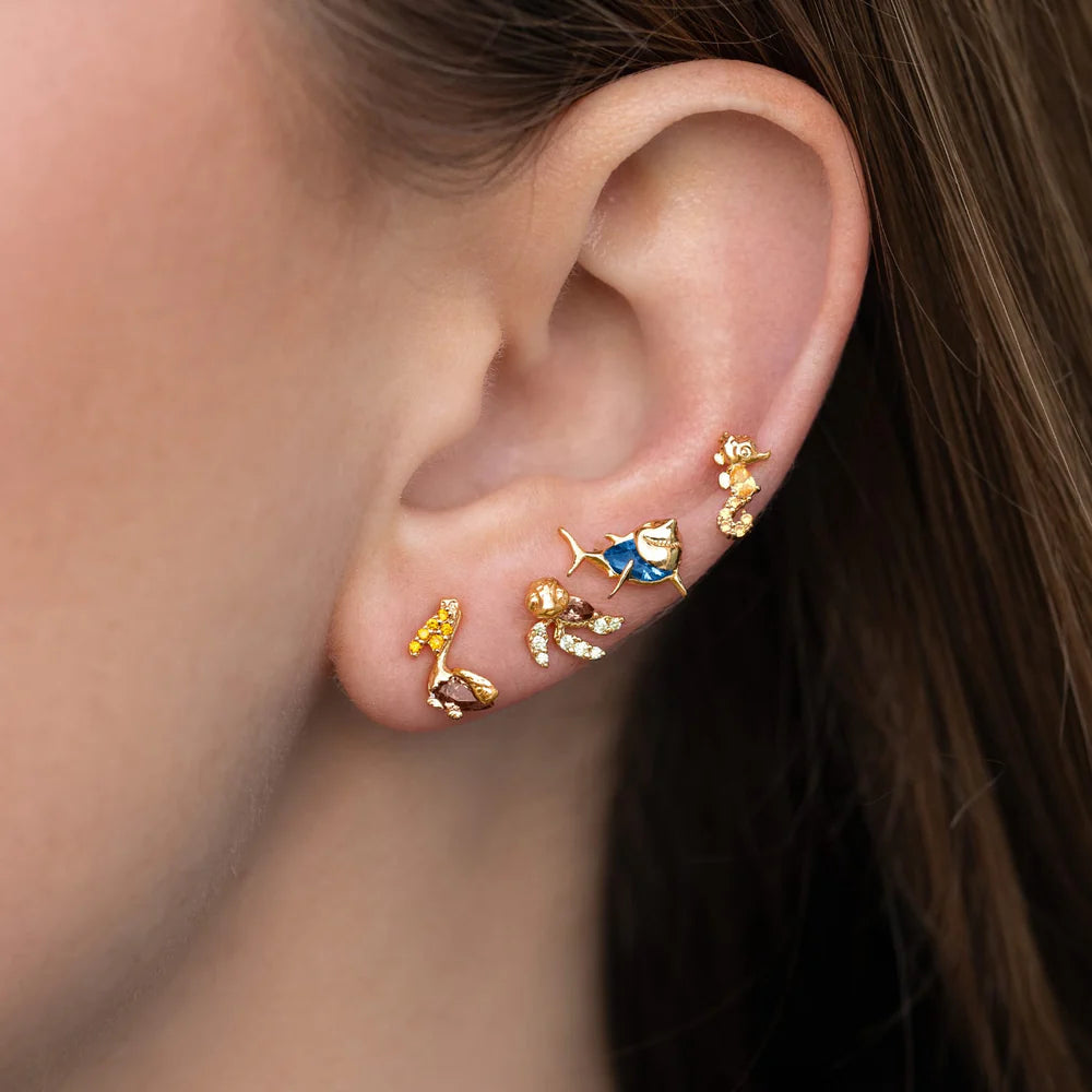 Oro Laminado 18k con Pedrería y Poste de Plata